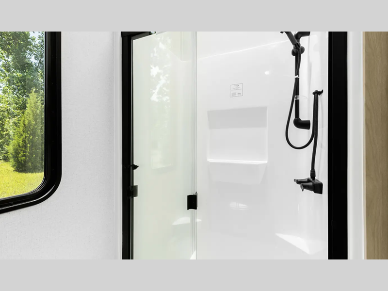 It will be so easy to enjoy extended stays with a spacious shower, solid surface countertops, a stainless steel kitchen package, plus washer and dryer prep! A tankless water heater will provide convenience each day, and the dual ducted 15k BTU A/C units will help keep you comfortable. You'll find many hassle-free features outside as well, such as an electric awning with an LED light strip, a folding grab handle, two 30 lb. LP tanks, and more!