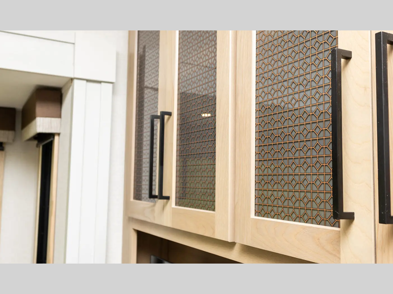 - Solid wood, square inset cabinet doors, painted or wood grain