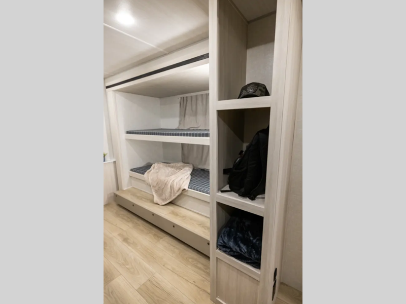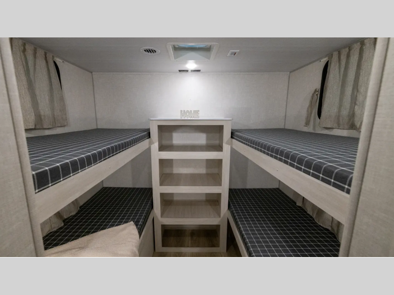 Sleeps 8 Slides 1 Length 35 ft 1 in Ext Width 8 ft Ext Height 11 ft 3 in Hitch Weight 915 lbs Dry Weight 6618 lbs Cargo Capacity 1500 lbs Fresh Water Capacity 40 gals Grey Water Capacity 40 gals Black Water Capacity 30 gals Number Of Bunks 4 Available Beds Queen Refrigerator Type 12V Refrigerator Size 10 cu ft Number of Awnings 1 Water Heater Type Tankless AC BTU 31500 btu Awning Info 21' Electric w/LED Light Strip Axle Count 2 Washer/Dryer Available Yes Shower Type Standard Electrical Service 50 amp Similar Floorplans