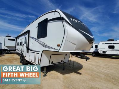 With any Reflection 150 Series fifth wheel by Grand Design, there is more available payload capacity and a broader range of half-ton trucks capable of towing this fifth wheel, and no slider hitch is needed thanks to the 90-degree turning radius which makes them short bed friendly and easier to tow. The mandatory Ultimate Power package provides a "One-Touch" automatic leveling system and a detachable power cord with LED light for easy setup, plus motion sensor pass-through lighting and entry lighting, and the Tire Linc TPMS will help you stay safe on the road. The interior offers residential cabinetry and premium Congoleum flooring, to the booth dinette and residential-style window treatment. Make your refined decision today!