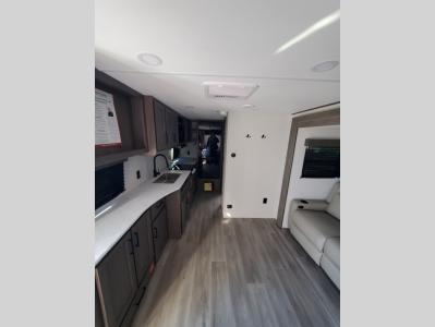 Sleeps 4 Slides 1 Length 24 ft 11 in Ext Width 8 ft Ext Height 11 ft Int Height 6 ft 6 in Hitch Weight 517 lbs GVWR 6995 lbs Dry Weight 5397 lbs Fresh Water Capacity 56 gals Grey Water Capacity 39 gals Black Water Capacity 39 gals Tire Size ST205/75R15LRD Furnace BTU 35000 btu Available Beds Queen Refrigerator Type 12V Cooktop Burners 3 Shower Size 27" x 36" Number of Awnings 1 LP Tank Capacity 20 lbs Water Heater Capacity 6 gal Water Heater Type Gas/Electric AC BTU 13500 btu Awning Info 17' Power w/LED Light Axle Count 2 Number of LP Tanks 2 Shower Type Walk-In Shower Similar Travel Trailer Floorplans