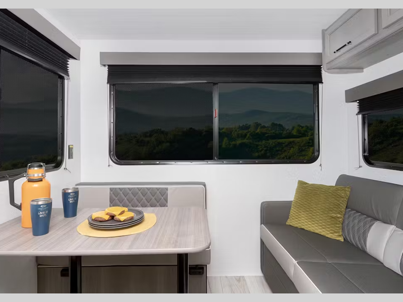 You will love the sophisticated interior decor, along with blackout night shades for added privacy and a tankless water heater. The I-beam frame features stamped steel cross-members and outriggers for maximum strength, and there is a walkable roof so you can easily clean your unit after a week in the woods. Heavy duty stabilizer jacks make set up easier than ever, and you'll have a power awning to relax under once your campsite is ready to go.