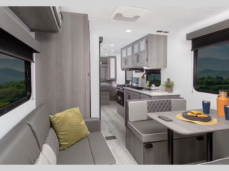 Sleeps 5 Slides 1 Interior Color Pewter Furnace BTU 30000 btu Available Beds Queen Refrigerator Type 12V Refrigerator Size 10 cu ft Number of Awnings 1 LP Tank Capacity 20 lbs Water Heater Type Tankless AC BTU 15500 btu Awning Info 18' Power Axle Count 2 Number of LP Tanks 3 Shower Type Standard Similar Floorplans